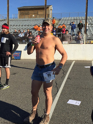 Nathan was actually the first person to finish his beer and cross the official starting line! I knew he'd be pretty fast, but there was a guy that blew past him in the first lap. The race was fun to watch! There were some people who took it pretty seriously, but there were also a lot of people that were obviously there just for fun. Brian was one the latter: